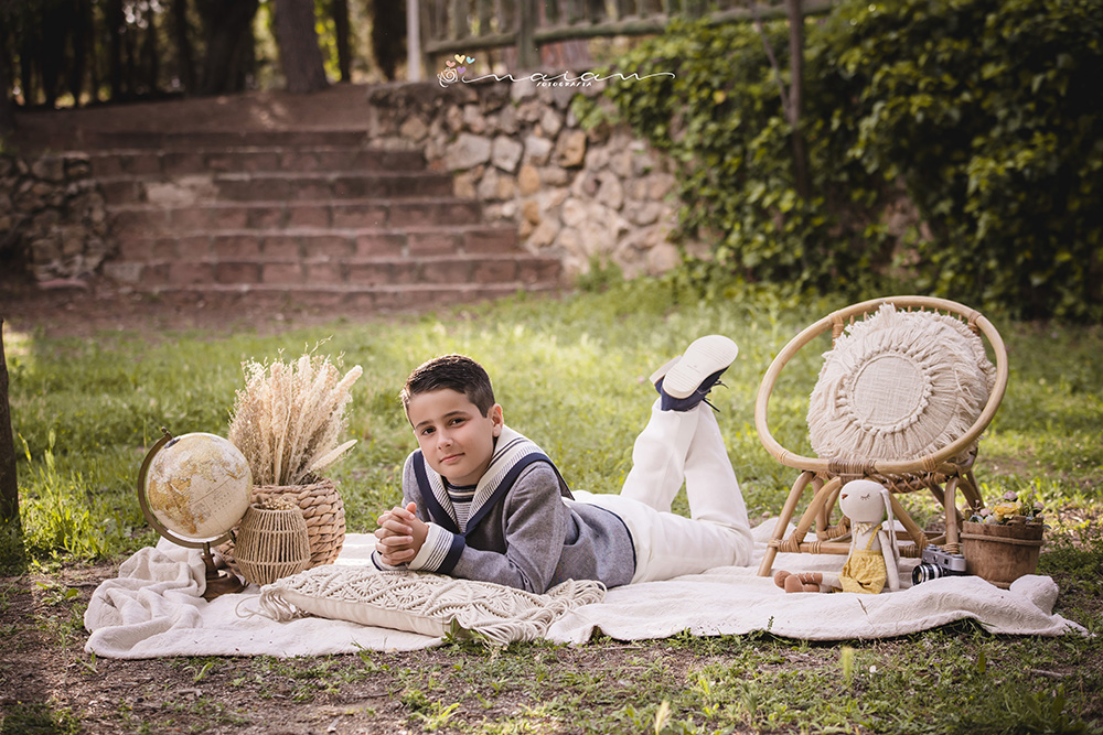 Podemos hacer fotos con el traje de comunión y otra puesta para tu peque. Si tiene alguna afición, podemos hablarlo para ver cual será el mejor contexto para incluirlo.